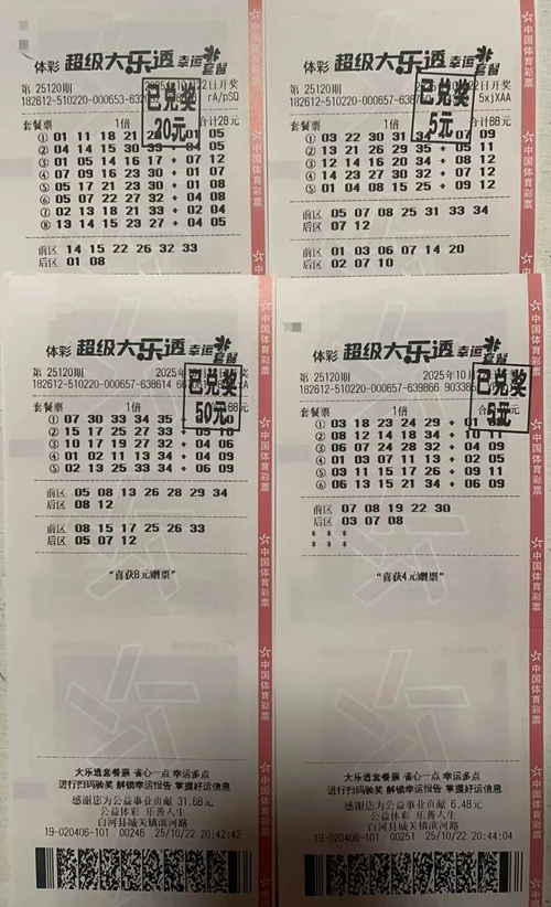 抽奖福利:在10月20日至11月8日期间,购买大乐透套餐票,并在开奖后通过“中国体育彩票”APP或小程序扫码验奖,查看“解锁幸运报告”活动页面,即可获得抽奖机会,赢取照片打印机、蓝牙耳机、大乐透体验券等惊喜好礼。活动期间用户获得的抽奖机会仅限当天有效,过期失效。中奖者可登录“中国体育彩票”APP或小程序,点击【我的】—【我的奖品】查看中奖记录。