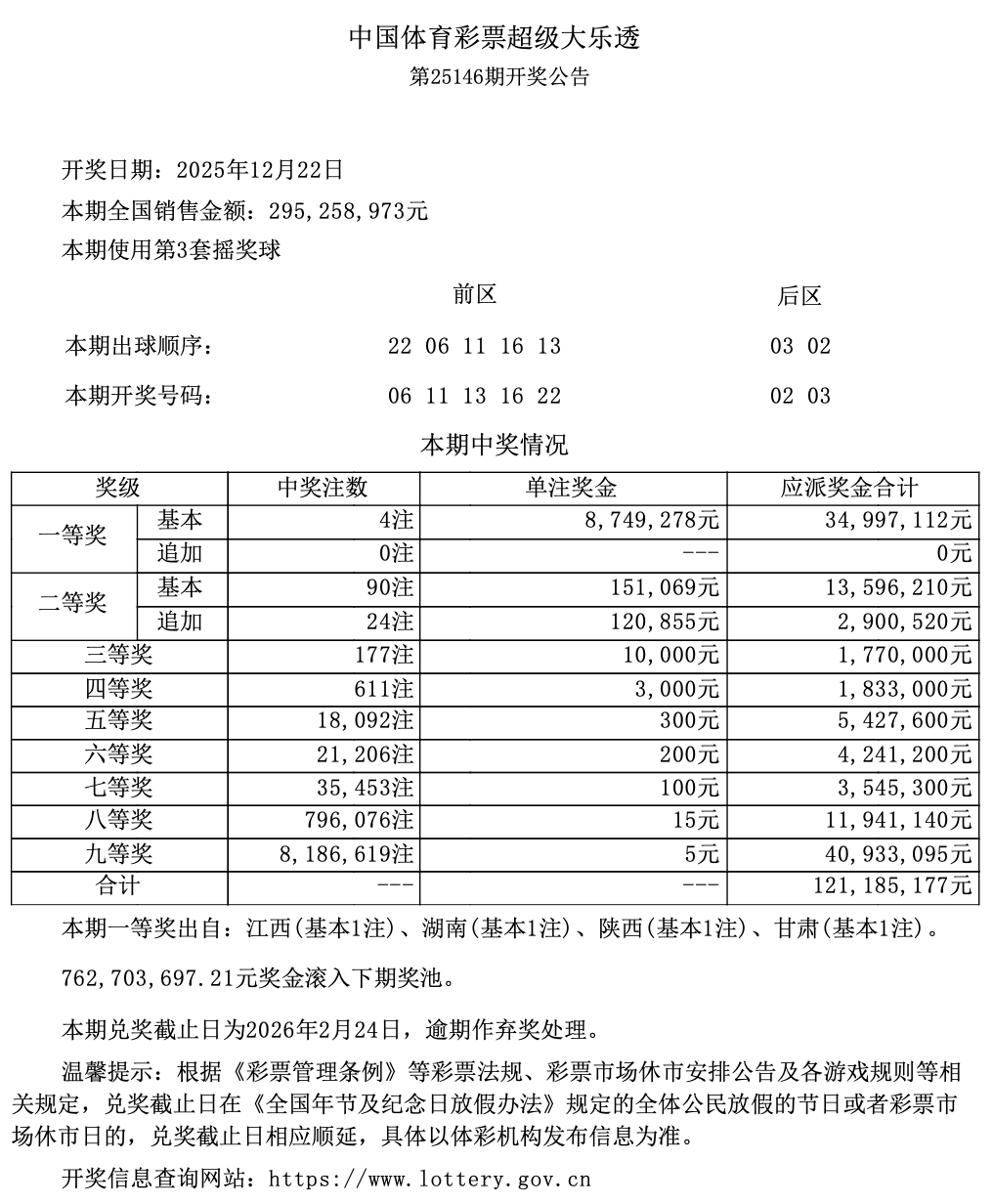 超级大乐透第25146期开奖