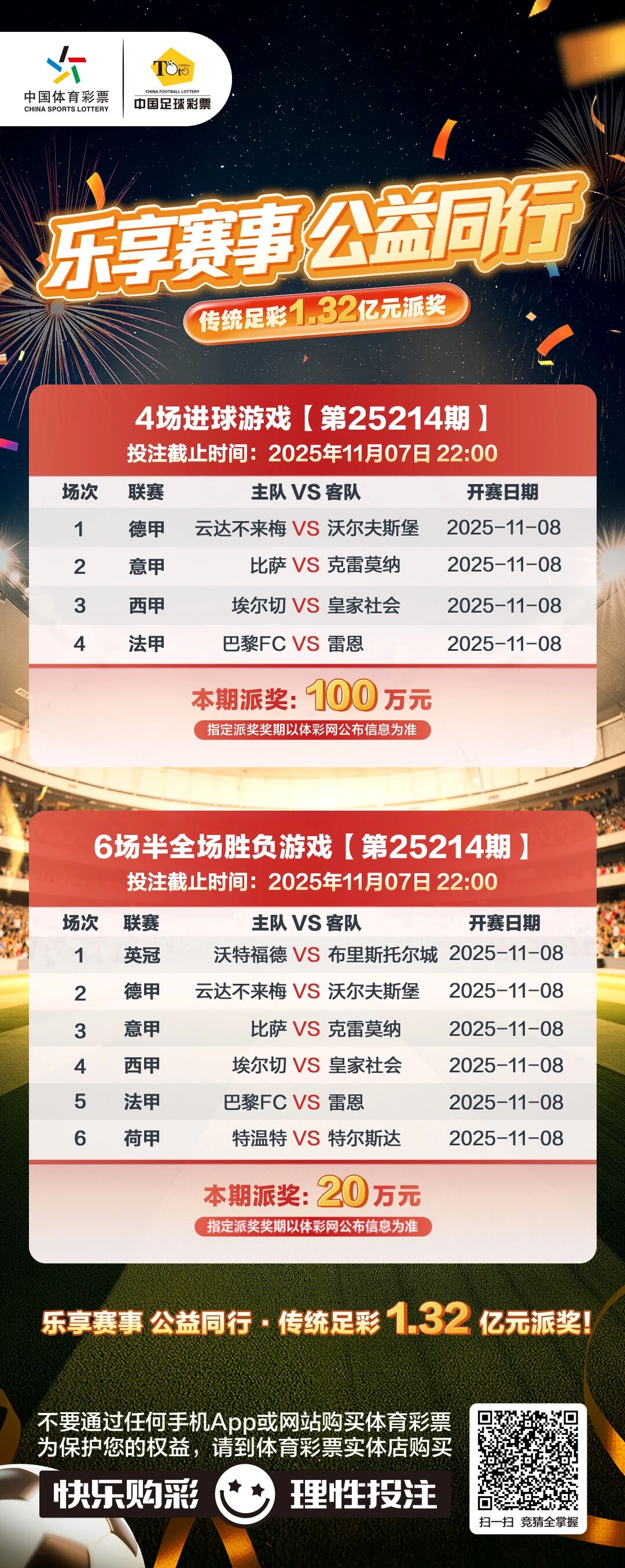 传统足彩派奖活动火热进行中!四大联赛点燃绿茵周末,理性购彩,为热爱添彩!