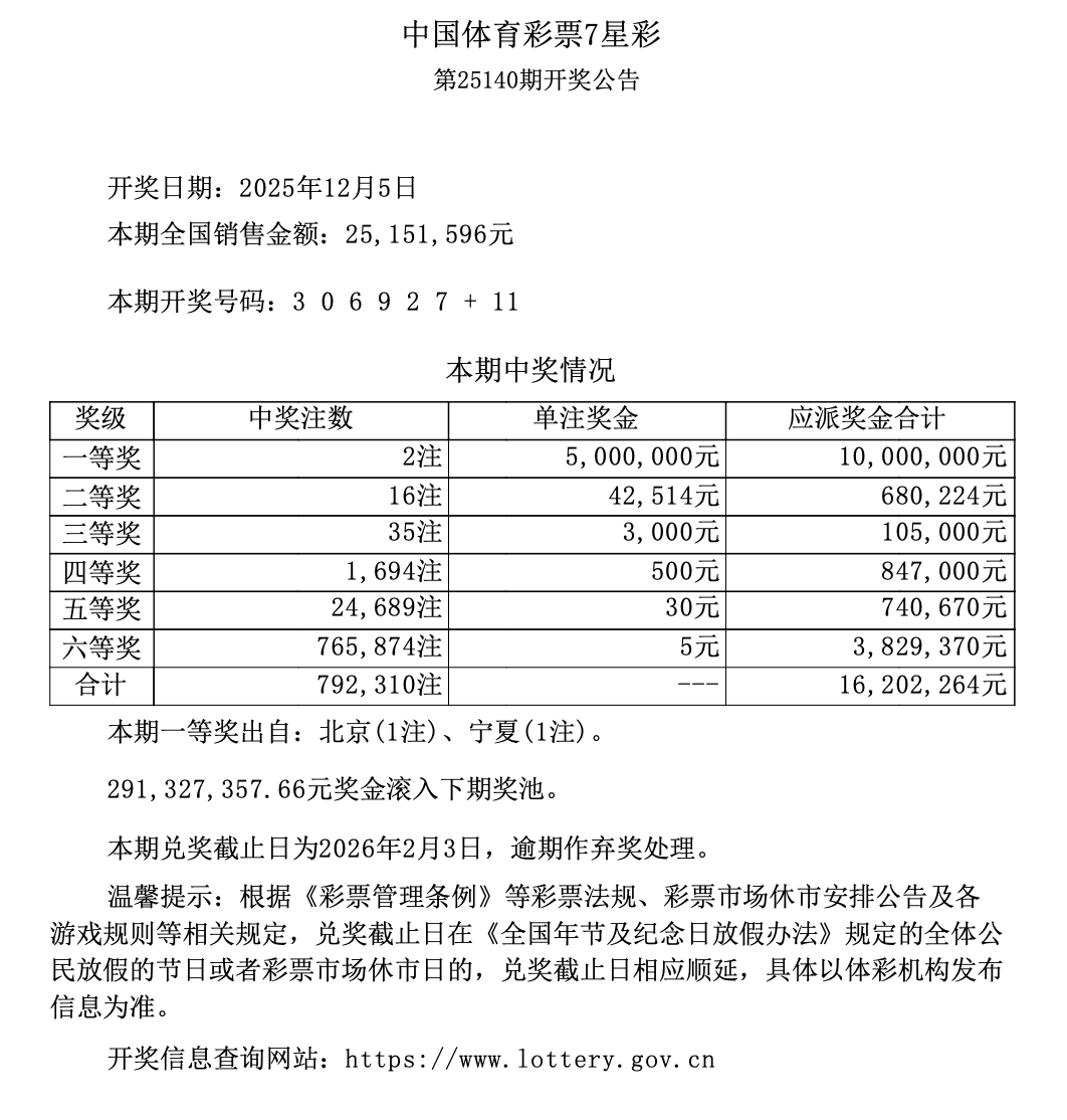第25140期开奖公告