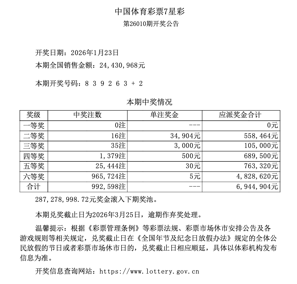 第26010期开奖公告