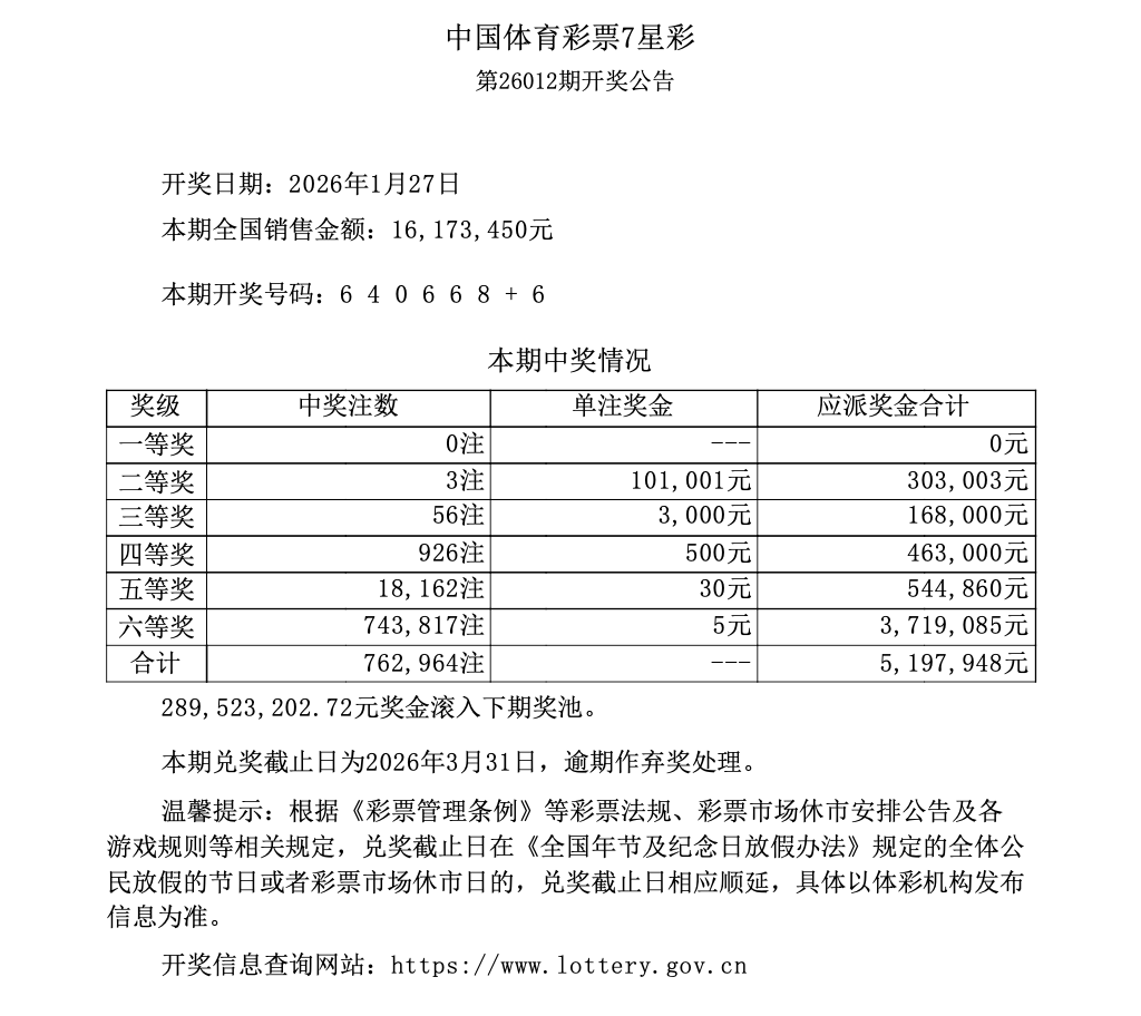 第26012期开奖公告
