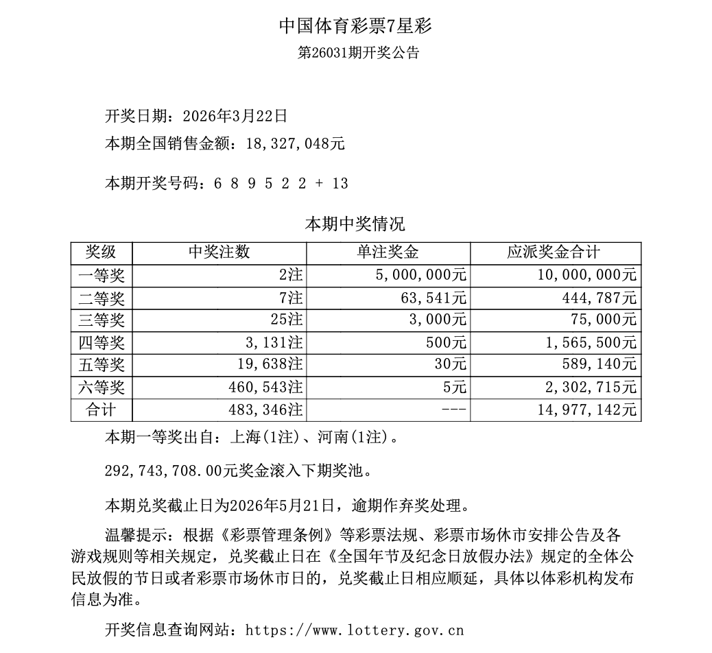 第26031期开奖公告