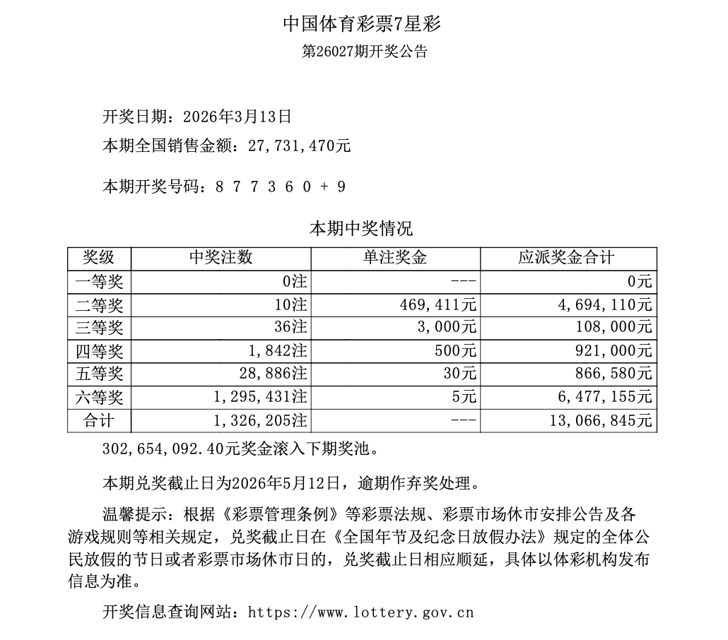 第26027期开奖公告