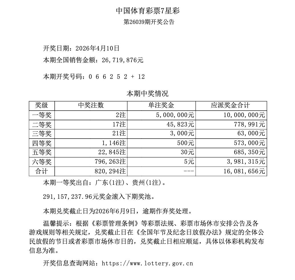 第26039期开奖公告