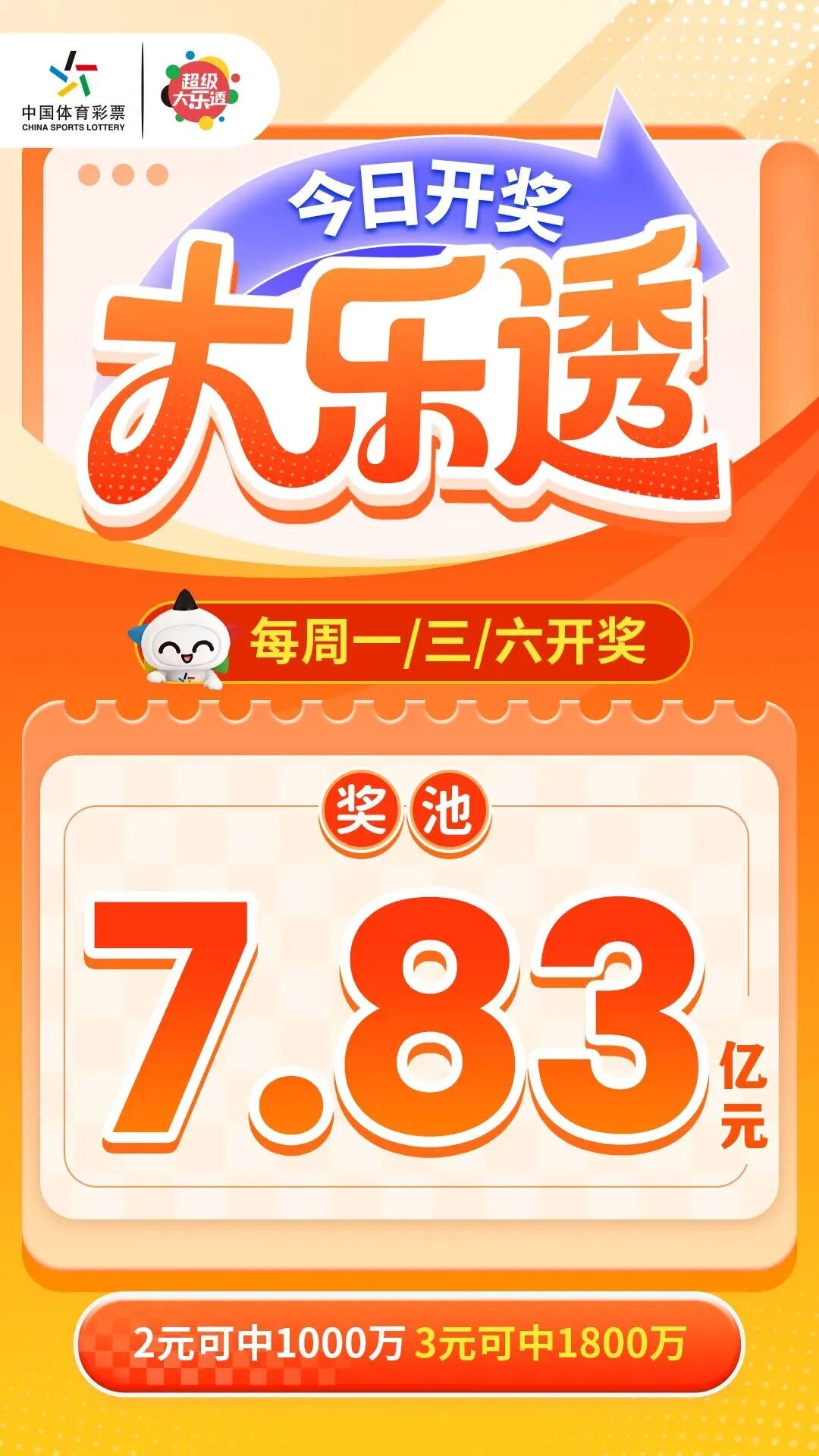 今日开奖,奖池7.83亿元