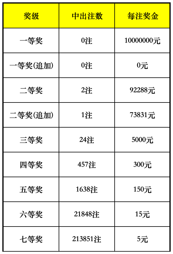 本地区本期中奖情况