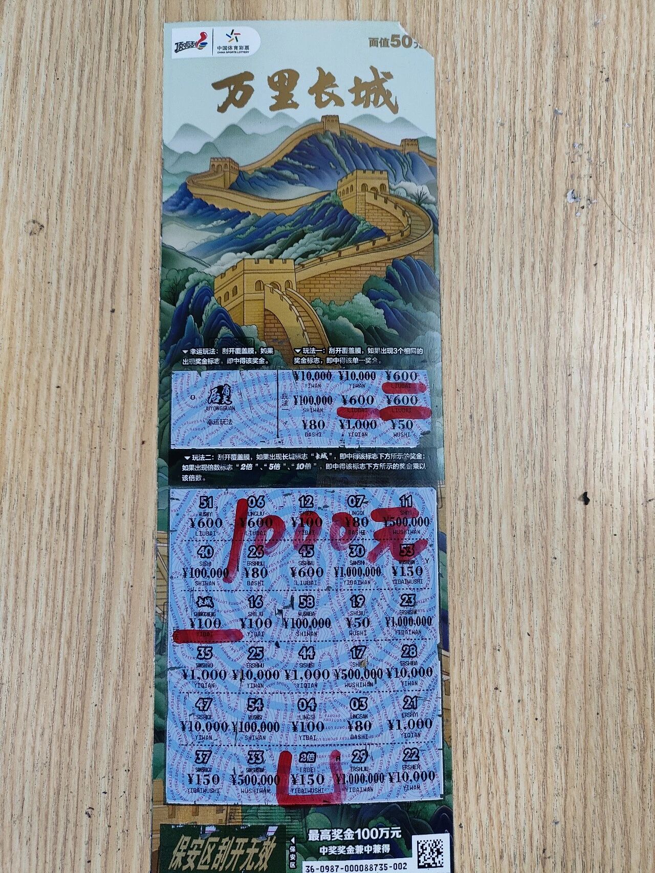 李女士(化姓)休息的时候总爱到位于延安吾悦广场璀璨天街的6124024963体彩综合体展示中心店逛逛,买几张顶呱刮当作休闲消遣。这天她看到顶呱刮新上的50元面值“万里长城”票,票面的长城画卷苍劲壮丽,正好合了她想去北京登长城的心愿,便选了一张。