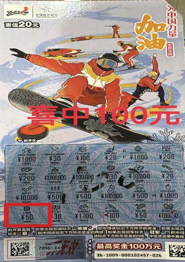 张先生对即开票情有独钟,每次有新票上市,他总会第一时间到店尝试,既是休闲娱乐,也为支持公益事业添一份力。“听说‘为中国力量加油雪舞龙腾’到货了,我立马就过来了!" 张先生笑着说道,这款以冰雪运动为主题的新票,刚一亮相就抓住了他的目光。没想到惊喜连连,他连着中了两个100元。