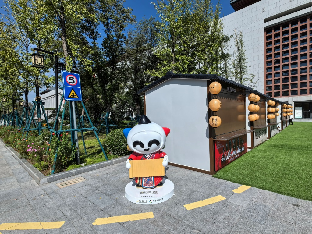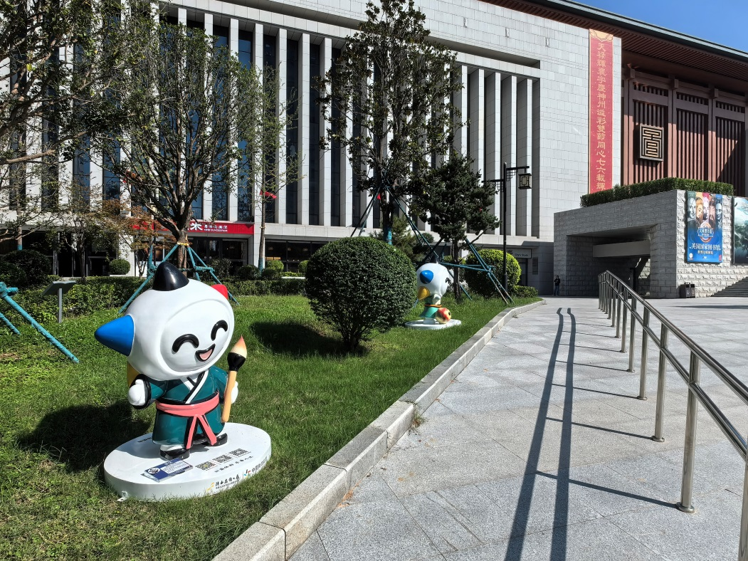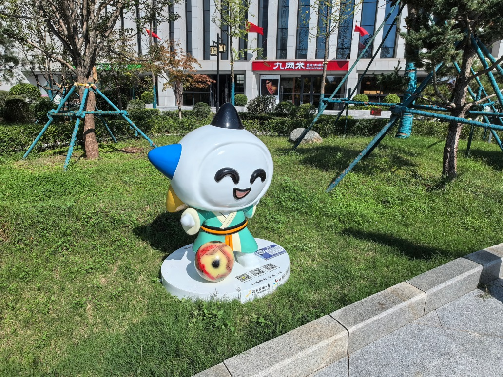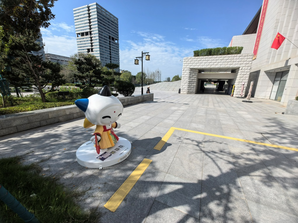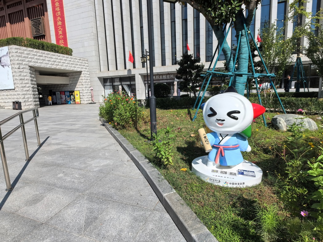 体彩吉祥物“乐小星”以醒目、干净的白色为主色调,在运动、可爱的艺术造型基础上,融入古风、历史文化元素,以生动、可爱的形象亮相在图书馆门前区域,形成了一道靓丽的风景。