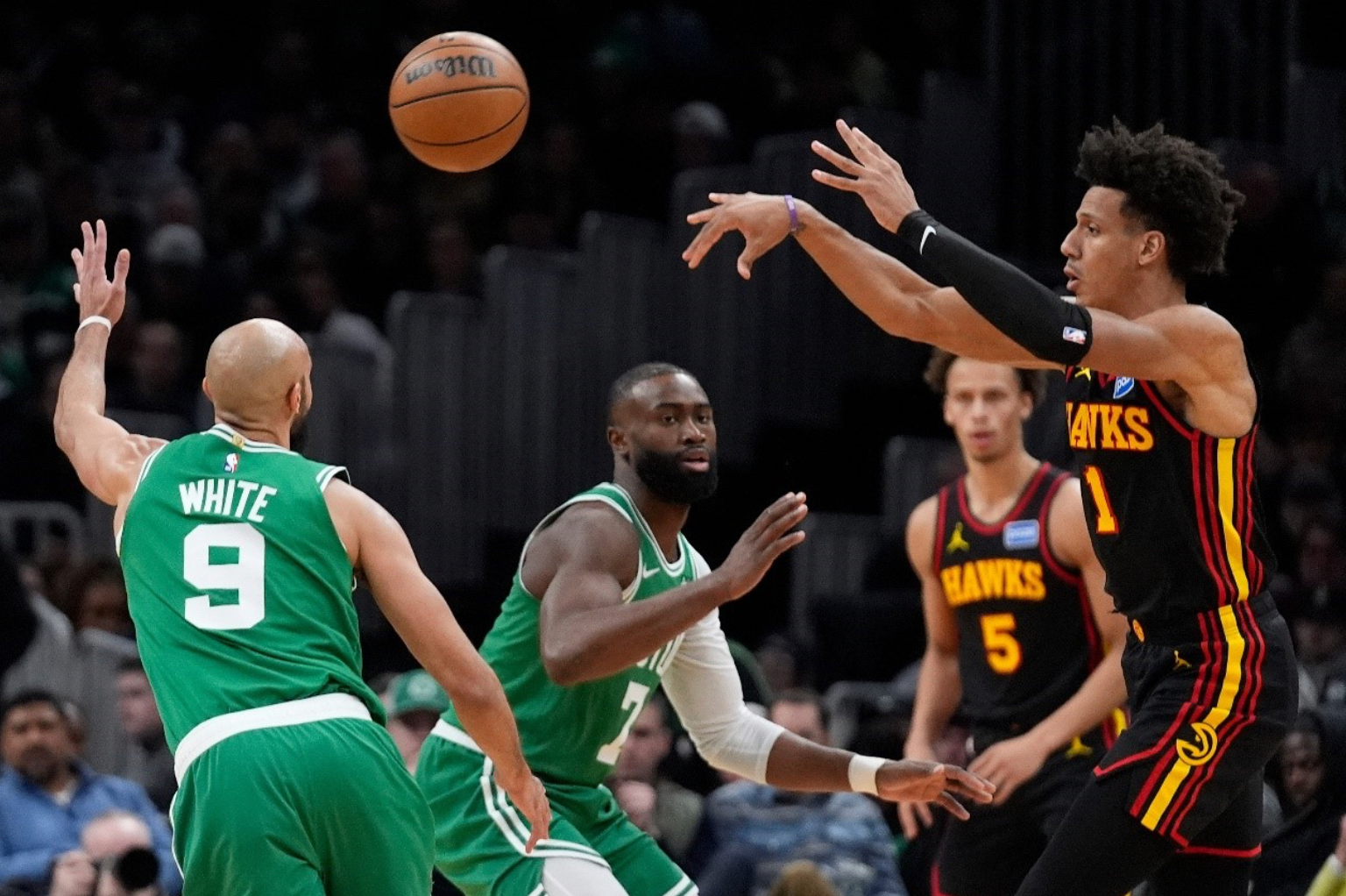 老鹰本赛季至今战绩为41胜32负,场均得118.3分,场均失116.4分。上场比赛,老鹰130-129加时战胜活塞,杰伦·约翰逊27分8篮板12助攻,麦科勒姆27分5助攻,亚历山大·沃克21分4篮板3助攻,戴森·丹尼尔斯16分13篮板4助攻。本赛季老鹰客场20胜16负。杰伦·约翰逊天赋逐渐显露,本赛季送出519次助攻,仅次于约基奇和坎宁安。近15场比赛,老鹰14胜1负,表现极佳,但对手大多实力不足,所以外界普遍对老鹰的实力持怀疑态度。对阵豪强凯尔特人,将是老鹰的正名之战。