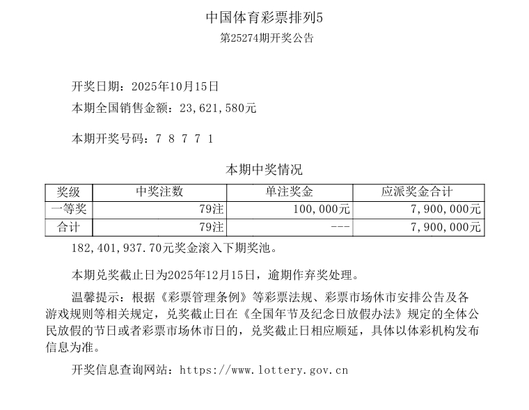 排列5 第25274期开奖 7 8 7 7 1