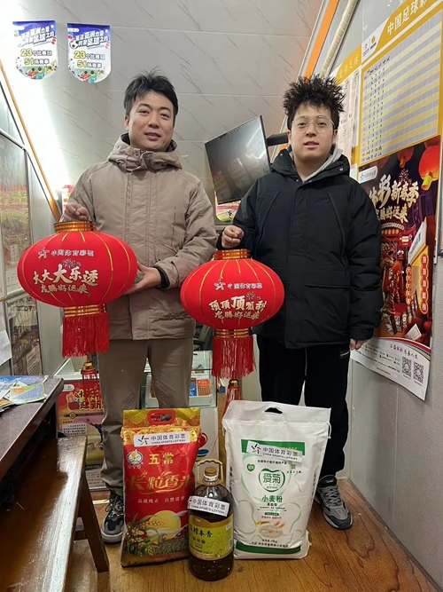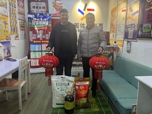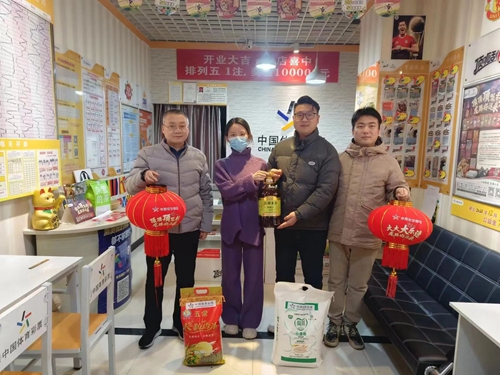 西安东区站站长白晓平带领副站长及站长助理走访慰问专营店代销者,也送去了米、面、油、灯笼等慰问品,每到一家他们都上前与代销者握手,一句“大家辛苦了”拉近了彼此间的距离,温暖了体彩一线工作者的心。
