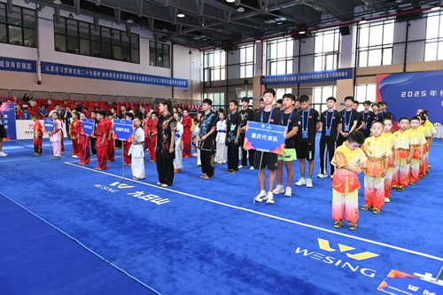 在中学组的太极拳展演中,选手们屈膝松胯、虚实转换间,动作行云流水,举手投足皆透着柔和沉稳,展现出超越年龄的从容气质;器械展演环节更添看点,手持长剑的运动员旋身劈剑,剑风凌厉;棍术选手跨步横扫,棍身舞动如银蛇穿梭,每一次器械与动作的配合都精准利落,引得场边阵阵掌声。经过角逐,重庆1队、新疆兵团1队、新疆1队、陕西1队获得一等奖;重庆3队、重庆2队、新疆2队、新疆兵团2队获得二等奖;陕西2队获得三等奖。