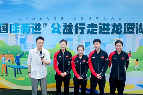8月20日,“国球两进”公益行活动在北京龙潭湖公园热闹开场。乒乓球奥运冠军马龙、李晓霞、丁宁、刘诗雯受邀出席,与公园现场游客和社区百余名群众展开互动。此次活动由住房和城乡建设部、国家体育总局共同主办,得到了中国体育彩票的大力支持。