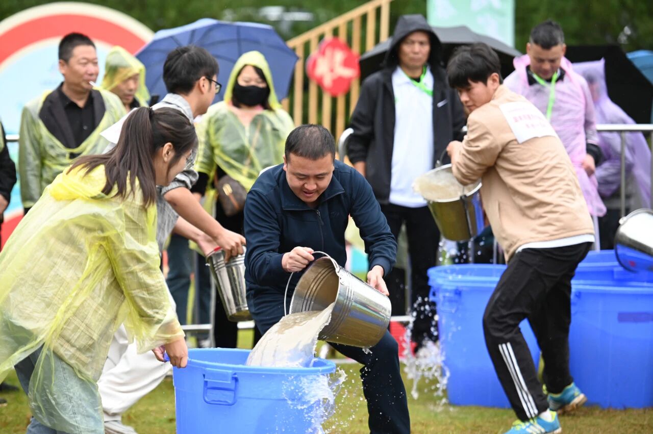 45岁的杜媛是蓝田县三里镇队的参赛选手,也是镇里的文体干部。她直言:“我们镇有27个村、8万多人,如今每个村都有了健身广场,篮球、羽毛球等比赛每年都吸引很多村民参加。”杜媛最喜欢健步走和广场舞,“每天跳一小时舞,感觉整个人更年轻、更有活力!”43岁的雷震来自蓝田县普化镇代表队,虽然备战过程中手部受伤,但他仍坚持参加了挑水抗旱、同心锯木等项目。“我虽然受了点伤,但轻伤不下火线,明天的拔河赛必须拿下,团队协作才是咱农民的看家本领!”