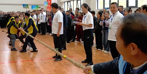 在团体项目农人三项比赛中,晒场收谷选手们争分夺秒,将玉米粒迅速装入箩筐,挑至指定地点,展现出熟练的农事技巧;挑水抗旱队员们分工明确、接力奔跑,努力让水缸水位率先到达红线;拔河赛更是点燃全场气氛,队员们齐心协力,在阵阵呐喊声中较着劲。