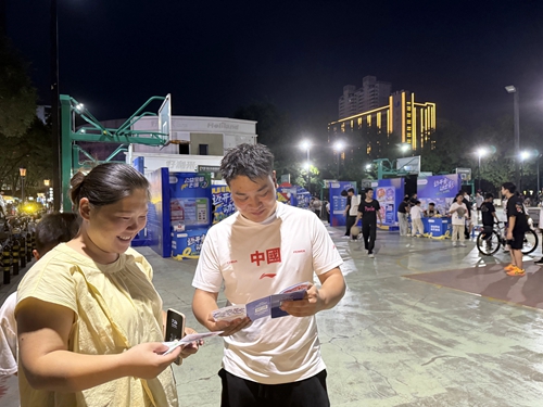 活动现场的奖品兑换区也始终人潮涌动。参与游戏即可领取的乐小星定制扇子,以其可爱的造型和实用的功能,成为了大家手中的“抢手货”;从1-4分兑换的酒精湿巾,到5-8分可选的跳绳或体彩定制随身小风扇,再到9-11分可抱走的乐小星吉祥物或便携握力器,以及12-15分专属的体彩定制雨伞、水杯,丰富多样的奖品让每一位参与者都能收获实实在在的惊喜与满足,真正做到了快乐运动、满载而归。