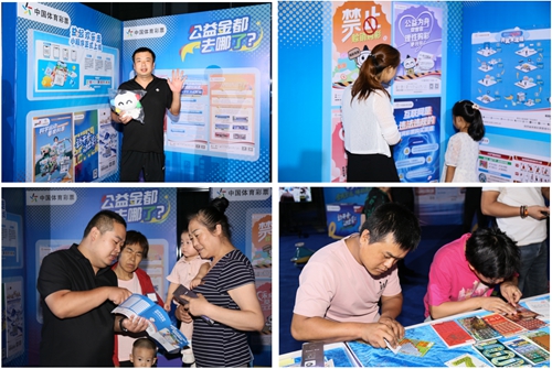 活动现场分为四大板块,游戏互动区,现场朋友通过参与游戏,感受体育的魅力所在;公益展示区,分别向大家介绍国家级、省级以及市级的体彩公益金使用情况,让大家了解到公益金所支持的体育、全民健身、医疗等多方面的救助;产品体验区,大家动动手指,感受体彩即开型彩票所带来的魅力;责任展示区,坚决杜绝向未成年人购彩及兑奖。