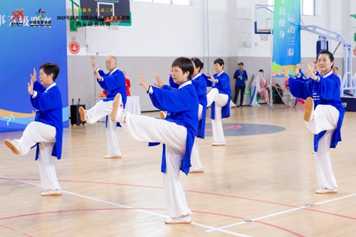 太极拳项目比赛在西安市人民体育场举行。来自全市11个区县的优秀代表队齐聚一堂,以拳会友,以武传情,共同展现中华传统武术的独特魅力。