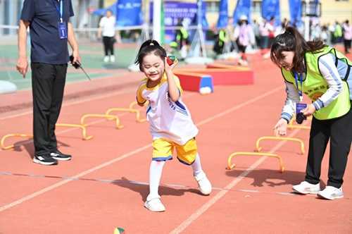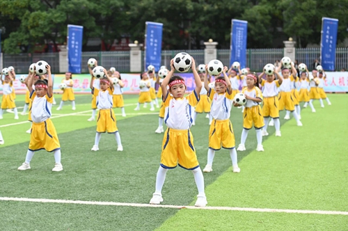 “我觉得踢足球很有意思。”参加足球操表演的徐烁垚说,“学校里有足球课、体能课,老师经常带我们做各种有趣的体能训练,这次能参加比赛,我特别开心。”现场像徐烁垚这样被体育氛围感染的孩子不在少数。今年6岁的王艺安捧着“热乎出炉”的参赛证明,兴奋得满脸通红,不停地吵着让爸爸妈妈帮他拍照留念。“我喜欢打篮球、踢足球,运动让我快乐,能参加这么好玩的比赛,我太高兴啦。”王艺安开心地说。