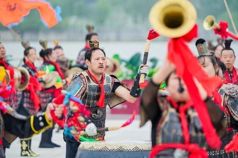 本次赛事分为公开组、高校组和本地组3个组别,涵盖22人龙舟与12人龙舟200米、500米直道竞速等多个项目。开幕式在秦汉战鼓表演中拉开帷幕,百余名身着秦军铠甲的鼓手演绎“出征、交战、凯旋”三部曲,展现传统非遗魅力。灵动的舞狮表演中,四头彩狮踩着鼓点跳跃盘旋,时而仰头咆哮,时而伏地憨态可掬,为现场增添了许多欢乐祥和;岸边数米长的彩带龙随之翻飞,高杆龙与彩带龙交相呼应,表演者们手持长杆舞动着巨龙,尽显灵动与力量。