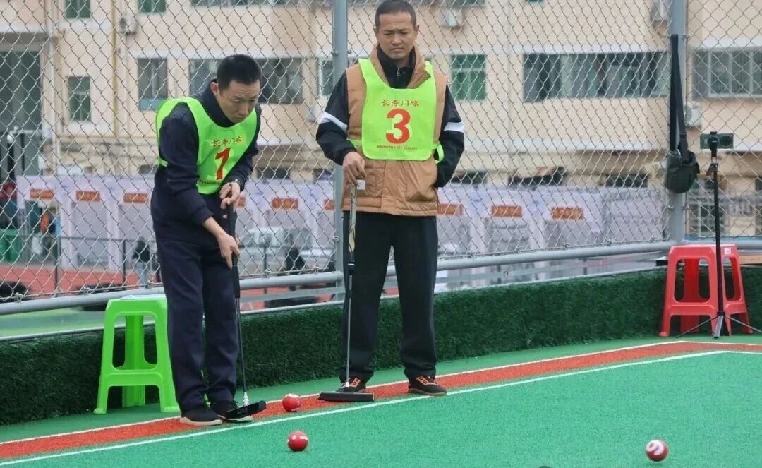 比赛现场,选手们个个精神抖擞,斗志昂扬,全身心投入到每一轮的较量中。他们手持球杆,眼神专注而坚定,在门球场上精准地挥杆击球,巧妙地控制着球的走向和力度。在比赛过程中,各队选手都展现出了高超的球技和顽强的拼搏精神。有的队伍战术灵活多变,通过巧妙的布局和默契的配合,一次次化解对手的攻势,并抓住机会发起反击。