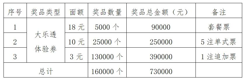 (五)活动期间,每位购彩者累计获赠大乐透体验券总金额不超过人民币3000元。