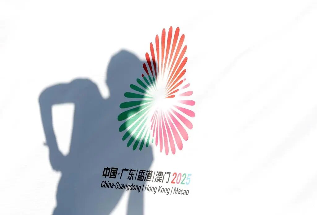 11月12日,一名参赛选手在比赛中经过一处第十五届全国运动会会徽图案。当日,第十五届全国运动会田径项目男子20公里竞走决赛在广东珠海举行。