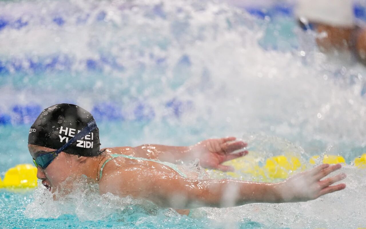 11月17日,第十五届全国运动会游泳男子50米仰泳决赛在广东省深圳市举行,浙江队选手徐嘉余在比赛中出发。