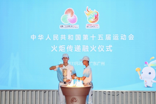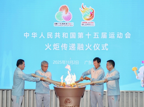 11月2日下午,十五运会火炬传递融火仪式在广东奥林匹克体育中心成功举行。
