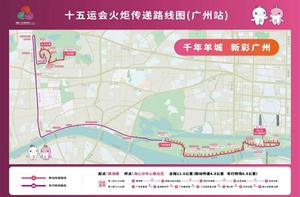 广州赛区的火炬传递路线突出“千年商都”的城市特色,全程11.6公里(其中,跑动传递4.8公里,车行转场6.8公里)。既串联了镇海楼、明代古城墙、五羊雕塑、天字码头等老建筑、老景点,又展示了二沙岛、星海音乐厅、珠江新城、海心沙亚运公园等新地标、新空间。