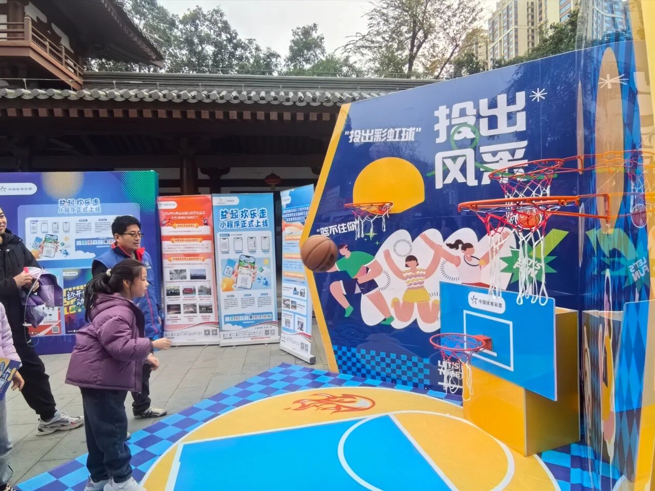 在运动打卡区中,“投出风采”和摸高挑战项目尤其受欢迎。参与者完成各区域打卡并集齐印章后,可领取相应奖品。