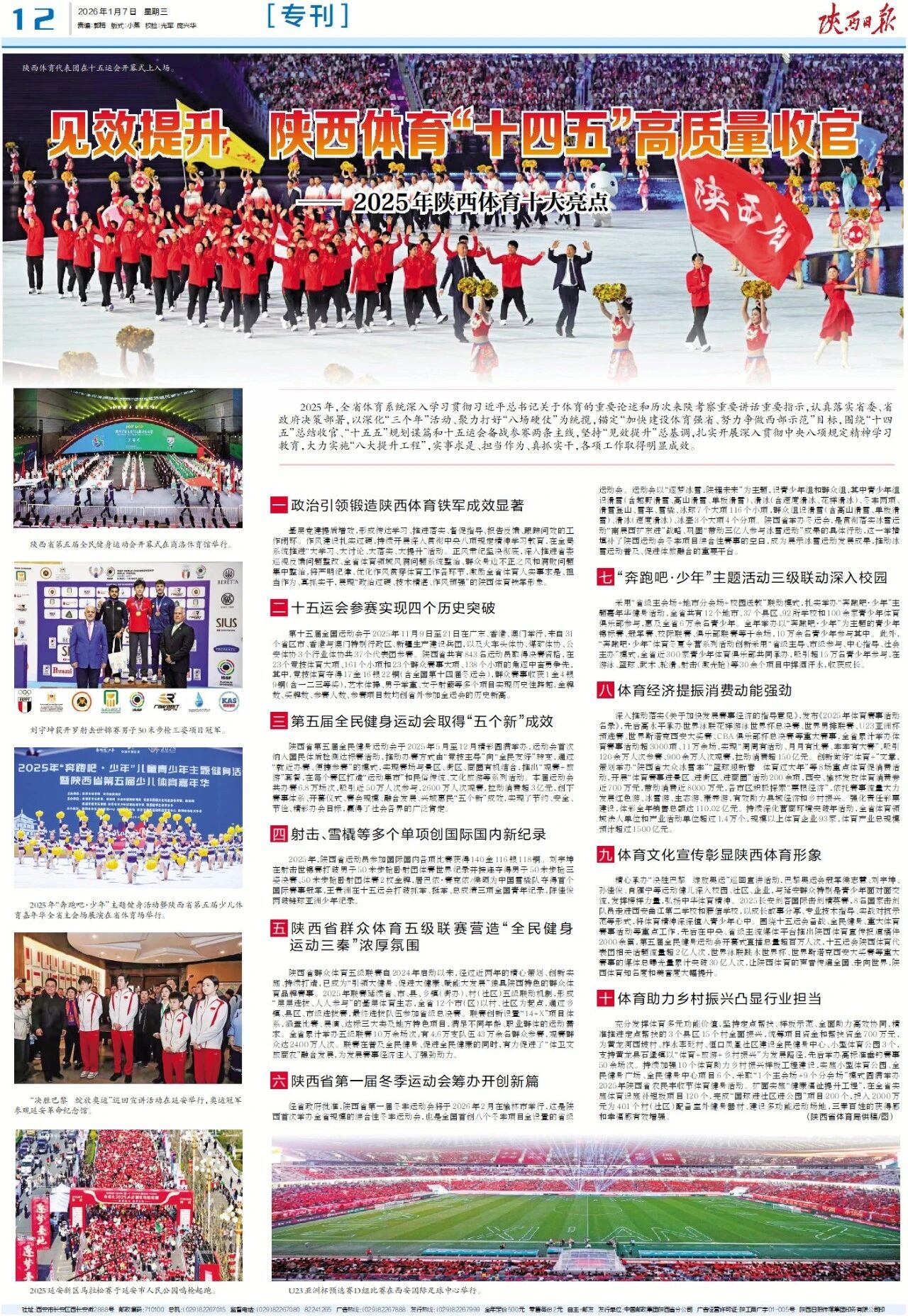 2025年,全省体育系统深入学习贯彻习近平总书记关于体育的重要论述和历次来陕考察重要讲话重要指示,认真落实省委、省政府决策部署,以深化“三个年”活动、聚力打好“八场硬仗”为统揽,锚定“加快建设体育强省、努力争做西部示范”目标,围绕“十四五”总结收官、“十五五”规划谋篇和十五运会备战参赛两条主线,坚持“见效提升”总基调,扎实开展深入贯彻中央八项规定精神学习教育,大力实施“八大提升工程”,实事求是、担当作为、真抓实干,各项工作取得明显成效。
