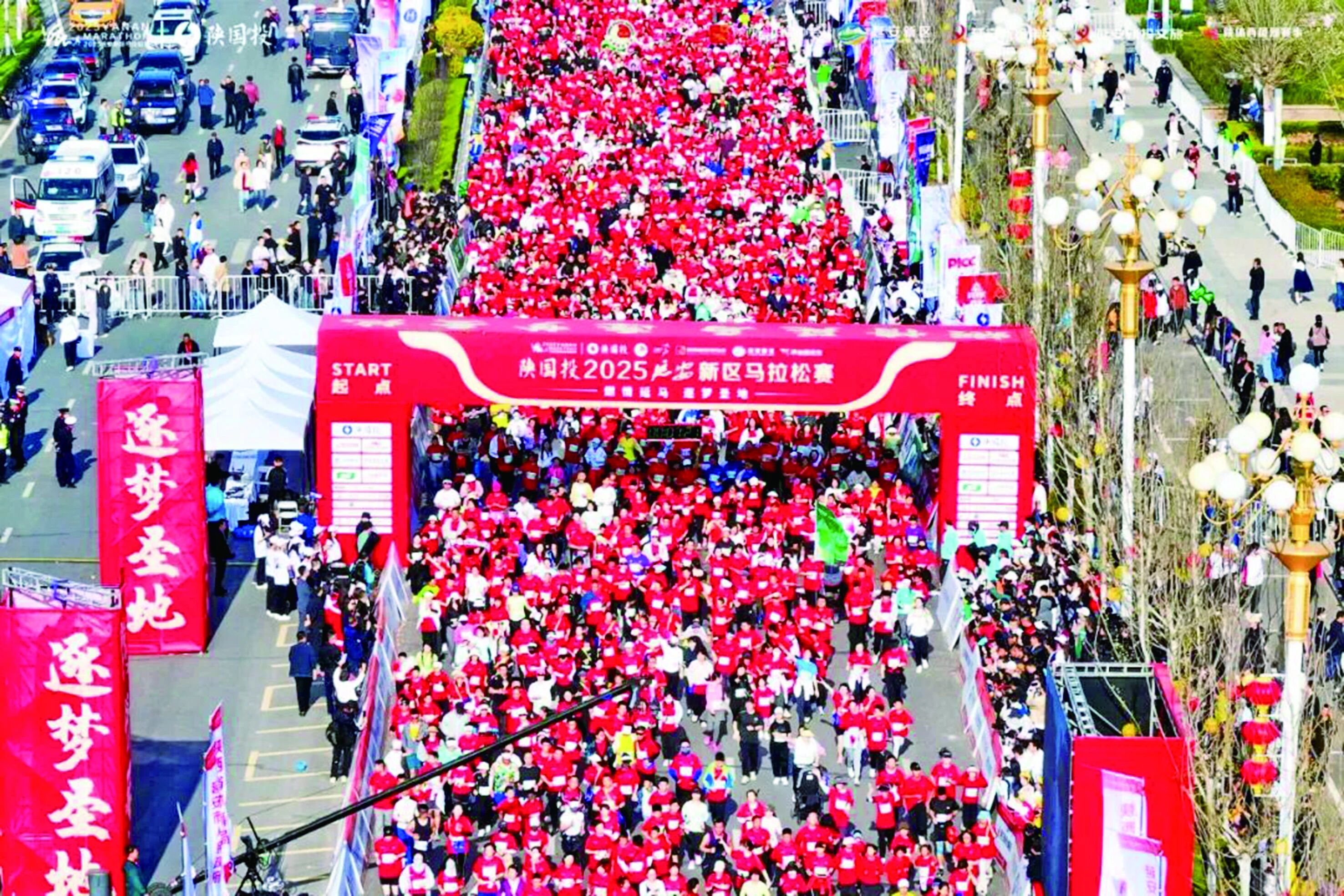 2025延安新区马拉松赛于延安市人民公园鸣枪起跑。