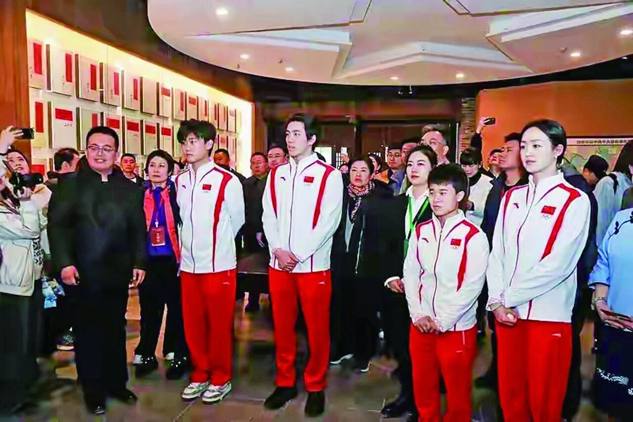 “决胜巴黎 绽放奥运”巡回宣讲活动在延安举行,奥运冠军参观延安革命纪念馆。