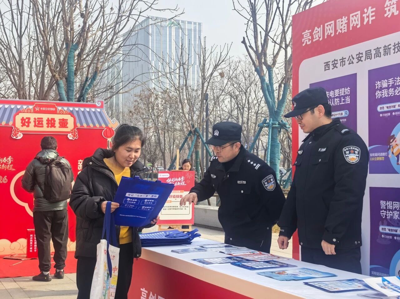 在传递新春喜悦的同时,活动更将反诈科普、安全购彩作为重要内容,切实守护市民权益。现场特别邀请西安市公安局高新分局的民警、中国联通西安分公司工作人员开展专业的反诈宣传,为市民送上“反诈安全锦囊”。公安民警围绕反诈中心APP安装使用展开讲解,重点剖析刷单诈骗、虚假投资理财诈骗、冒充公检法诈骗、虚假网络贷款诈骗、冒充客服诈骗等五大高发电信网络诈骗类型的作案手段与防范技巧,普及反电诈法律知识,强调“反诈以预防为主”的核心原则,提醒市民提高警惕、守护好个人与家人的财产安全。中国联通工作人员通过发放反诈宣传单页,向市民详细讲解电信网络诈骗的识别方法、防范要点与潜在危害,引导市民做好个人信息保密,提升全民反诈意识。