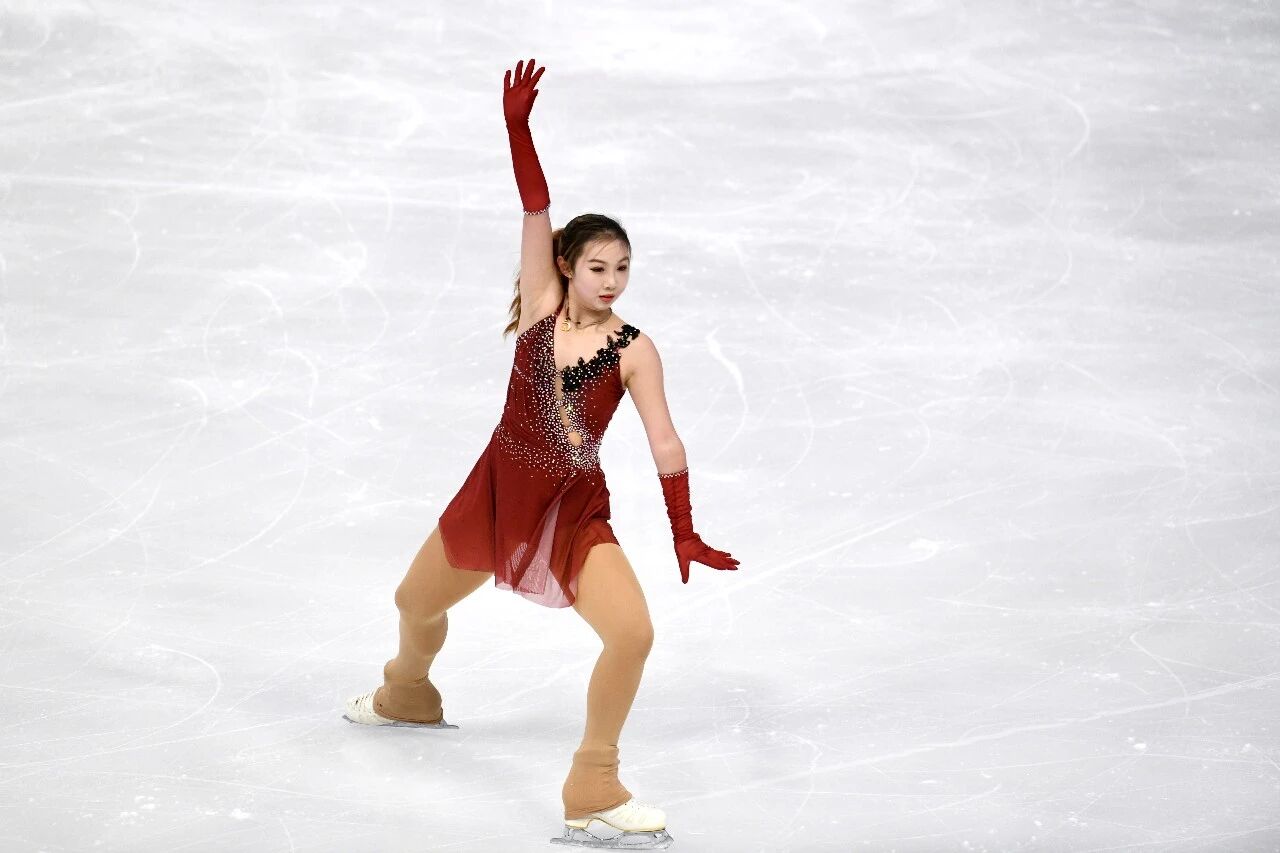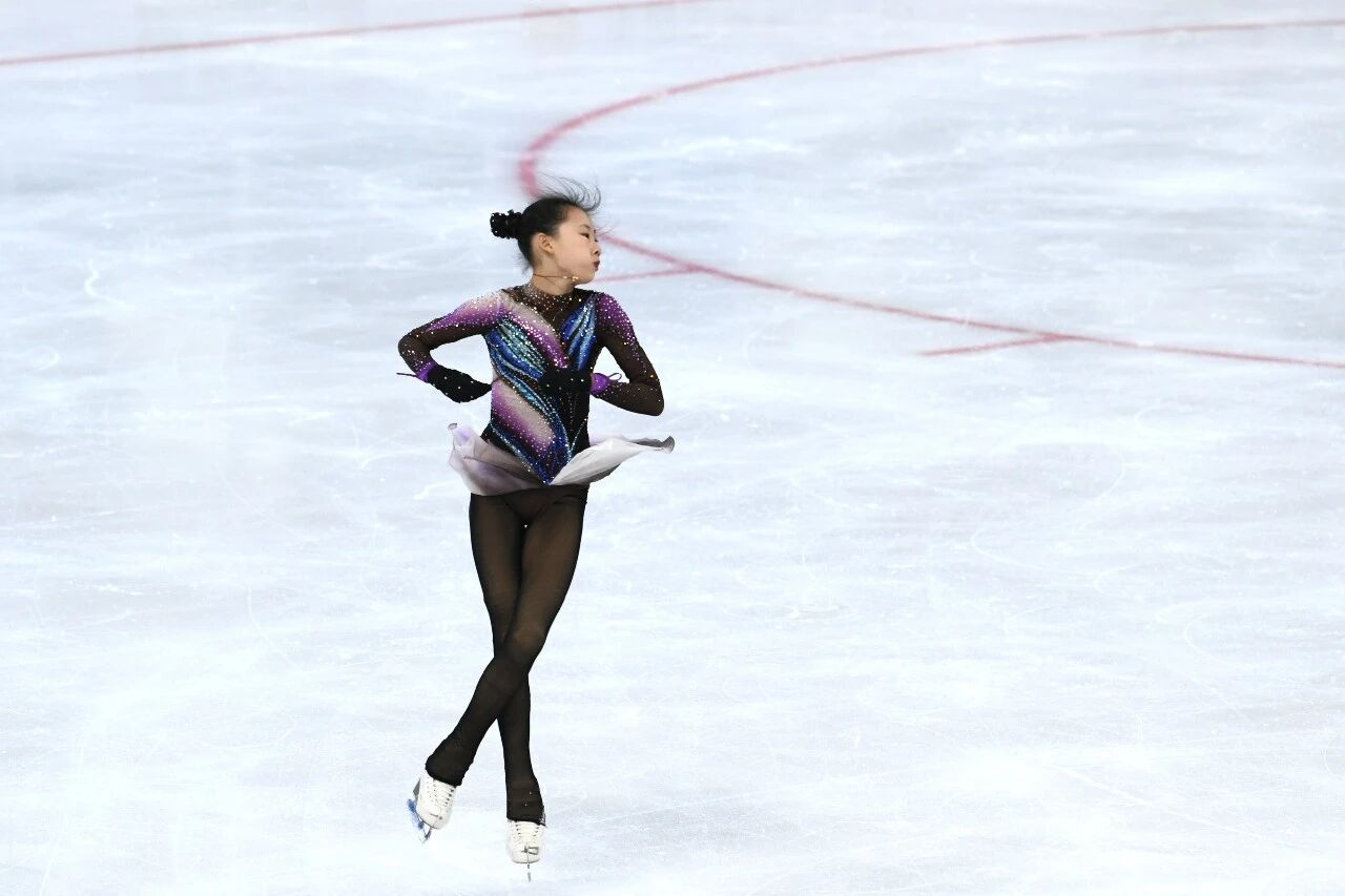 女子甲组自由滑比赛中,曾在短节目中零失误夺冠的张语桐继续稳定发挥。她8岁时偶然看到冰上旋转便被深深吸引,四年来坚持利用课余时间训练。本场她以两周半后内点冰跳开场,起跳有力、空中姿态控制出色,落冰干净,整套节目技术完成度高。在编排上,她将技术动作与音乐韵律紧密契合,使表演既流畅完整,又富有艺术感染力。最终,她以47.75分夺得冠军,西安选手陈紫菲以2分之差获得亚军,榆林选手李馥冰位列第三。