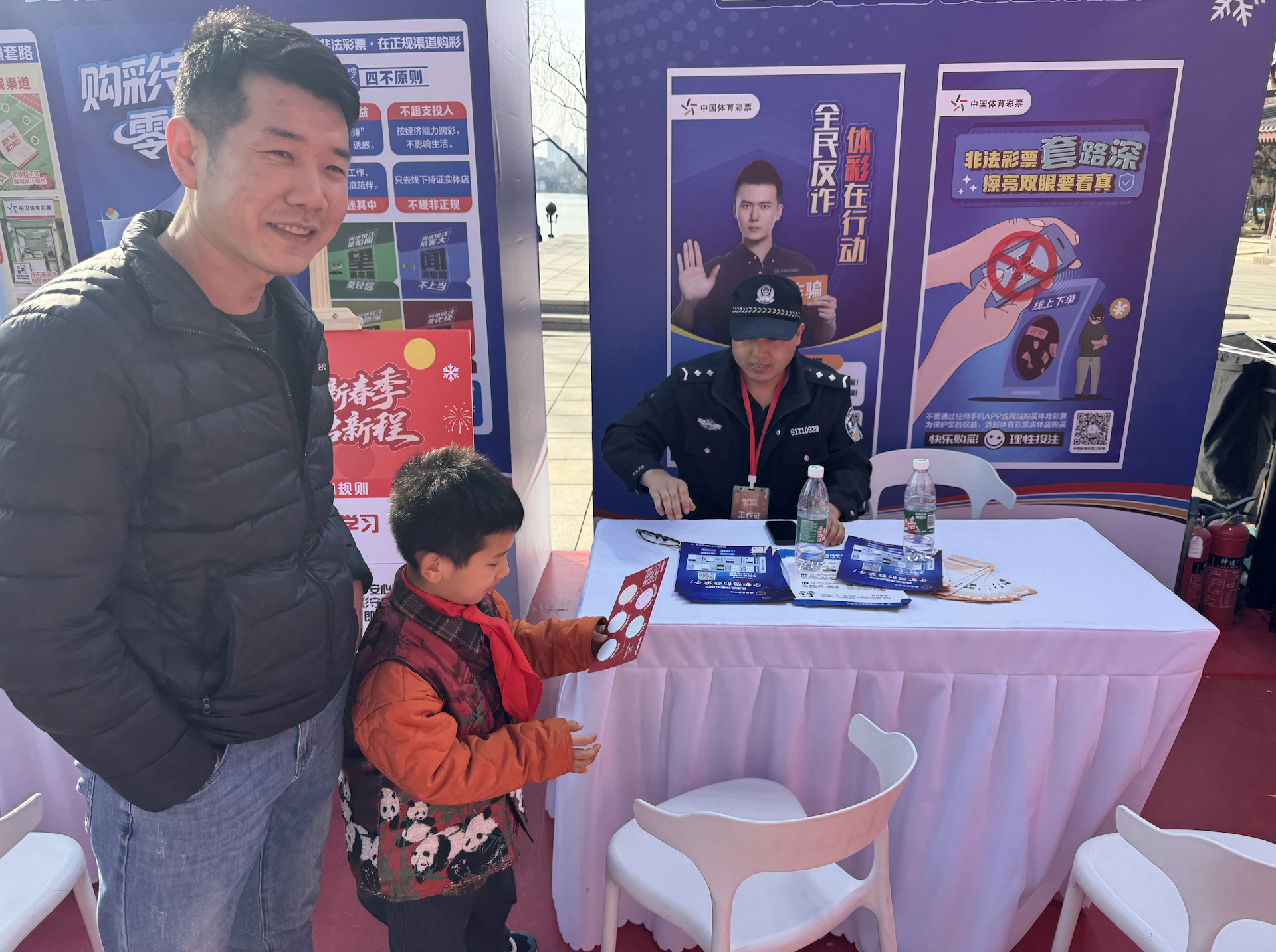 活动现场,公安民警、移动工作人员化身 “安全守护官”,在咨询台前为游客答疑解惑。他们不仅细致讲解合法购彩渠道、兑奖流程等实用知识,还重点解读《未成年人保护法》中禁止向未成年人售彩的相关规定,发放《安心购彩三折页》,构建购彩安全防护网。“以前对彩票了解不多,通过这次活动知道了非法彩票的危害,也清楚了体彩公益金的去向,以后会更理性地看待彩票,也愿意为公益事业出一份力。” 来自外地的游客李女士表示。