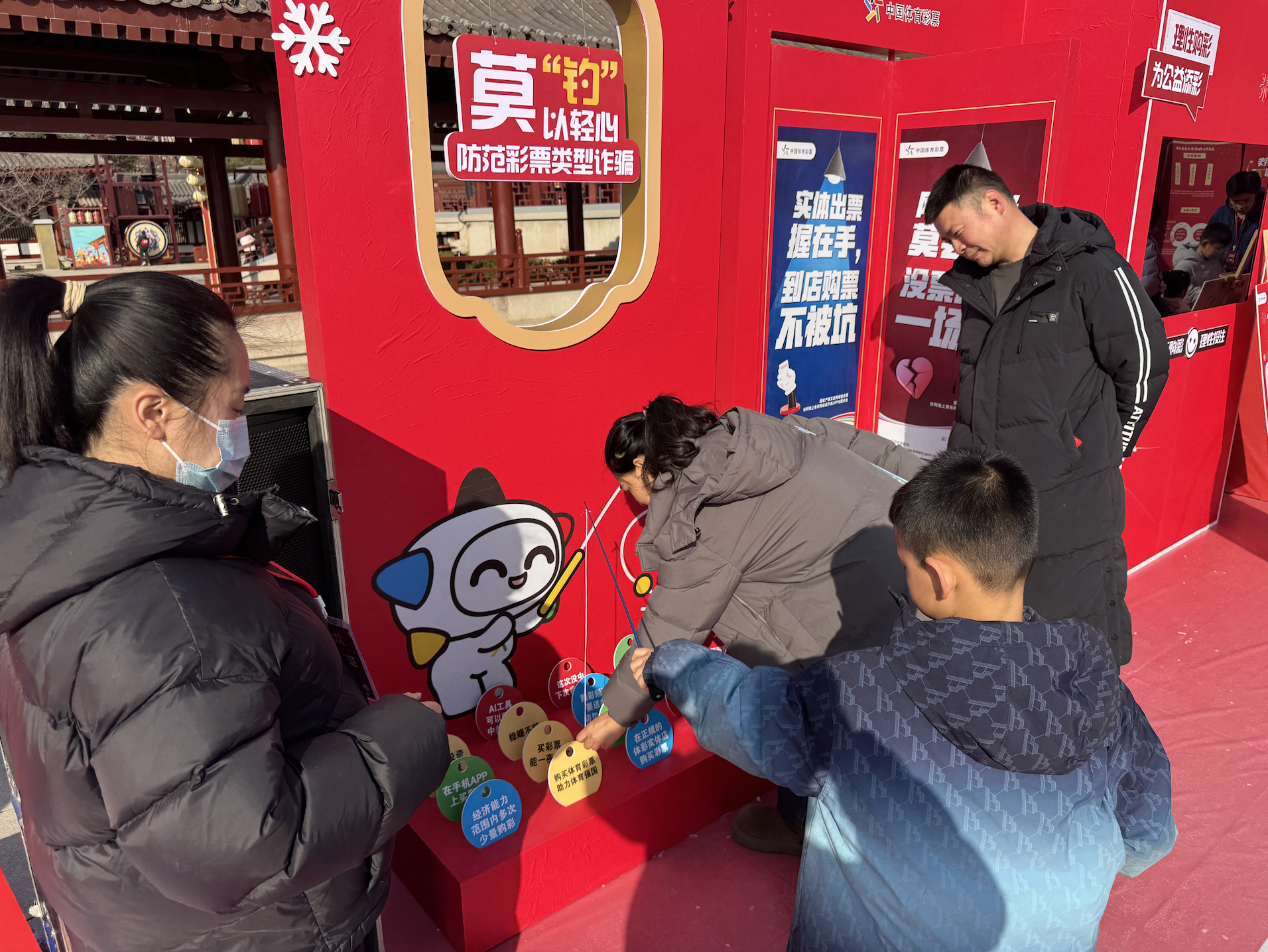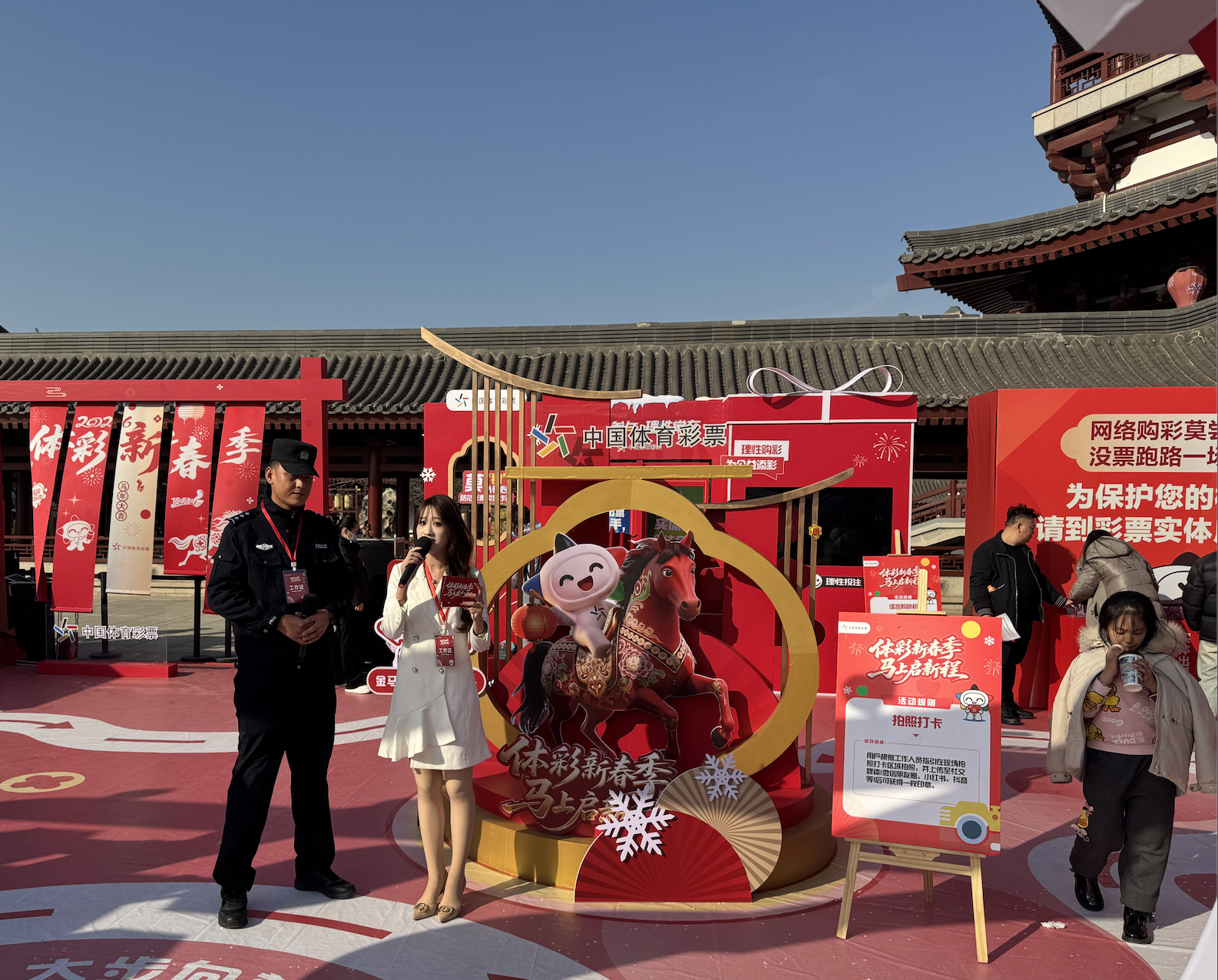 2月7日---8日,由省体彩中心主办,西安西区销售站承办的“体彩新春季 安心购彩守护行动”主题活动在大唐芙蓉园满举办。本次活动由场景打造、互动化体验为核心,反诈科普与体彩公益属性深度融合,通过趣味游戏、舞台展演、专业宣讲等多元形式,为西安市民奉上了一场兼具节日氛围与公益温度的特色盛宴,让责任彩票和公益体彩的理念深入人心,为新春增添了别样光彩。