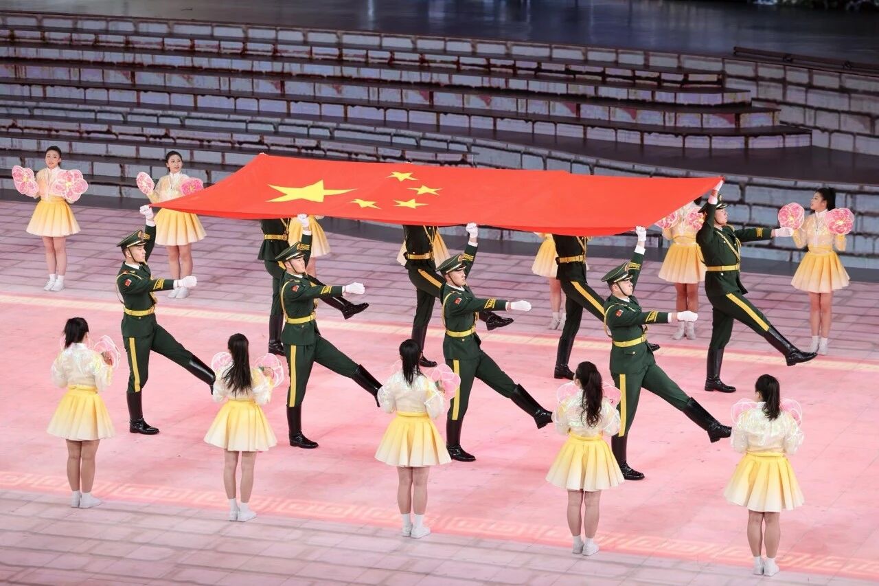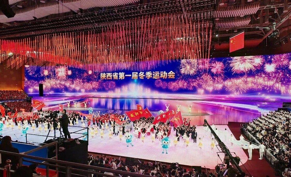 大文体表演环节中,以《驰冰燃雪向新程》为主题、以《古脉新承》《沸冬腾雪》《陕耀未来》为篇章相继精彩呈现,巨幅LED屏幕、光影效果、演员表演完美融合,向外界展示一个风光旖旎、向新向上的榆林,一个追赶超越、谱写新篇的陕西。