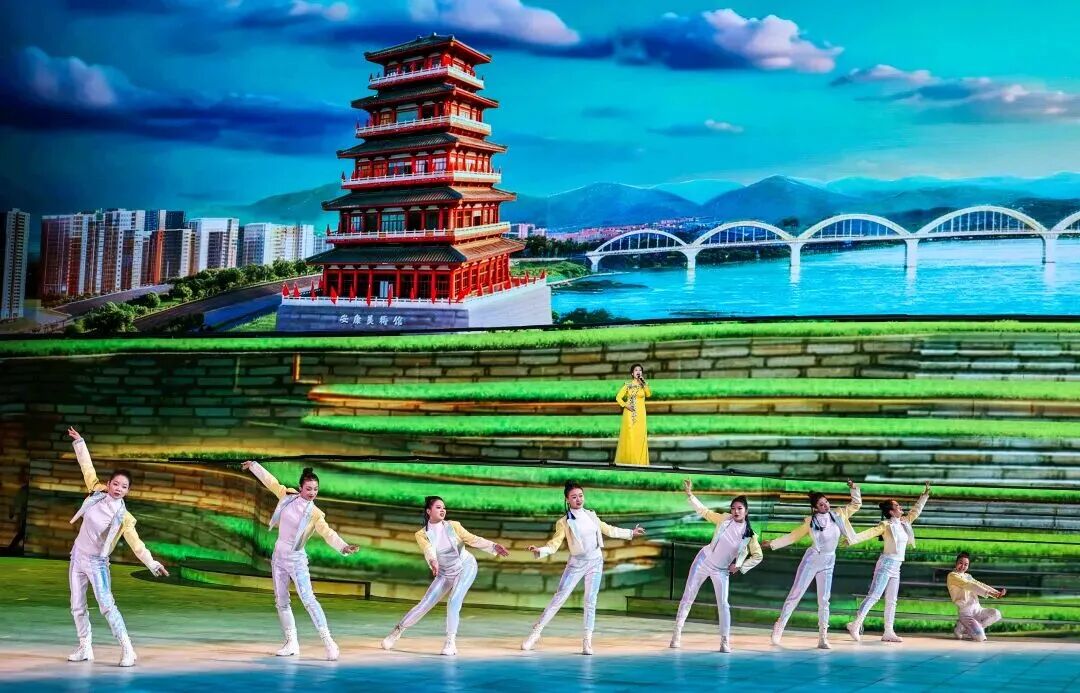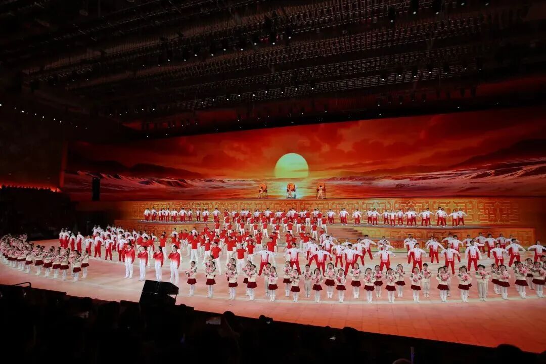 国旗入场,《东方红》旋律悠扬而起。大屏上铺展开一幅壮阔的黄河之景,随着画面变化,绥德师范、《沁园春·雪》手稿、延安宝塔山、八路军驻西安办事处旧址、马栏革命旧址、陕甘边革命根据地照金纪念馆等场景流动呈现。当8名仪仗队员高擎五星红旗,踏着《我爱你中国》的音乐铿锵走来,现场观众无不热血沸腾、激情澎湃。