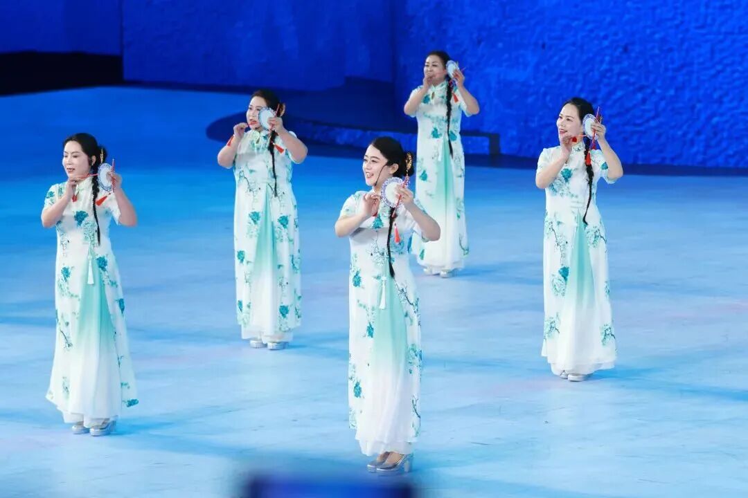 文体展演以深厚的文化内涵、宏大的艺术视野和精巧的创意构思,打造出一场融合冰雪魅力与时代气息的视听盛宴。演出以《沁园春·雪》的壮阔场景开启三个篇章,依次呈现“千里冰封”“山舞银蛇”“红装素裹”的史诗级视觉画卷,实现诗意的动态演绎与美学升华。