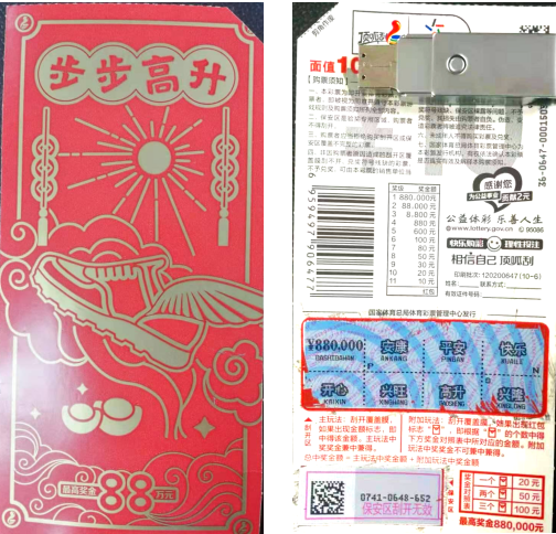 据幸运的中奖者袁先生回忆,在5月31日大乐透的开奖日的当天他跟朋友一起去彩票店里购买大乐透,投注完毕后他和朋友在店里转了一圈,一眼就看见了票面喜庆的“步步高升”红包彩票,想着这两年自己的事业正处于一个重要的上升期想图个好彩头,于是购买了1张“红包”票和2张“麻辣6”的即开彩票。没想到好运接踵而至,刮完“麻辣6”彩票中了25元,再刮“步步高升”时第一个格就刮出了数字880000。