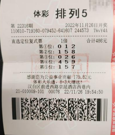 11月26日,位于汉中市汉台区前进西路京昆酒店西巷内的6121010009体彩实体店传来喜讯,该店中出体彩排列5第22316期一等奖1注,奖金10万元。本次中奖彩票为一张直选定位复式的排列5彩票,采用单倍投注,精准命中本期开奖号码“2、8、0、5、7”,直选定位复式的投注方式也为玩法增添了乐趣。