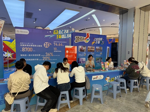 活动现场的电视全天滚动播放体彩公益视频,另外还设置了“公益打卡点”,市民与公益背景板合影,发送朋友圈并配文“理性购彩,助力公益”,即可获赠体彩公益宣传册与纪念礼品一份。