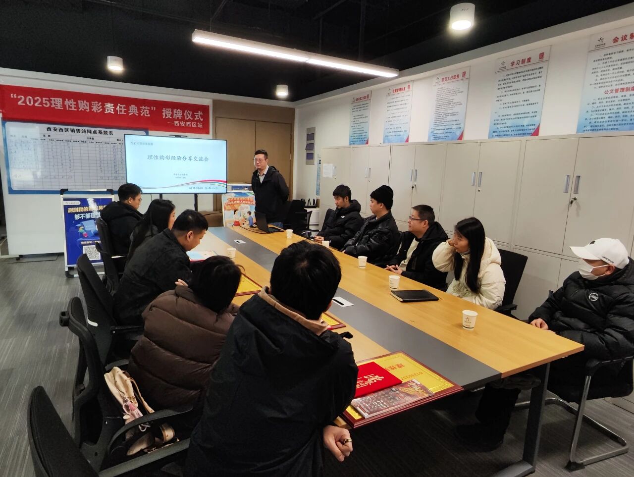 12月23日,西安西区销售站组织召开了“理性购彩经验分享交流会”。获得“2025年理性购彩责任典范”称号的代销者、销售员及购彩者参加了本次活动。西安西区销售站站长林勃为获奖者颁发了荣誉证书、奖牌及即开票奖品,对获得奖励的人员所做出的工作表示肯定,感谢他们为体彩事业高质量发展作出的贡献,希望后期继续发挥典范的引领作用,展现体彩人的责任与担当。
